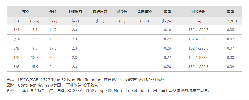 USCG/SAE J1527 Type B2 Non-Fire Retardant 海洋燃油加-排膠管 類別B2非阻燃性