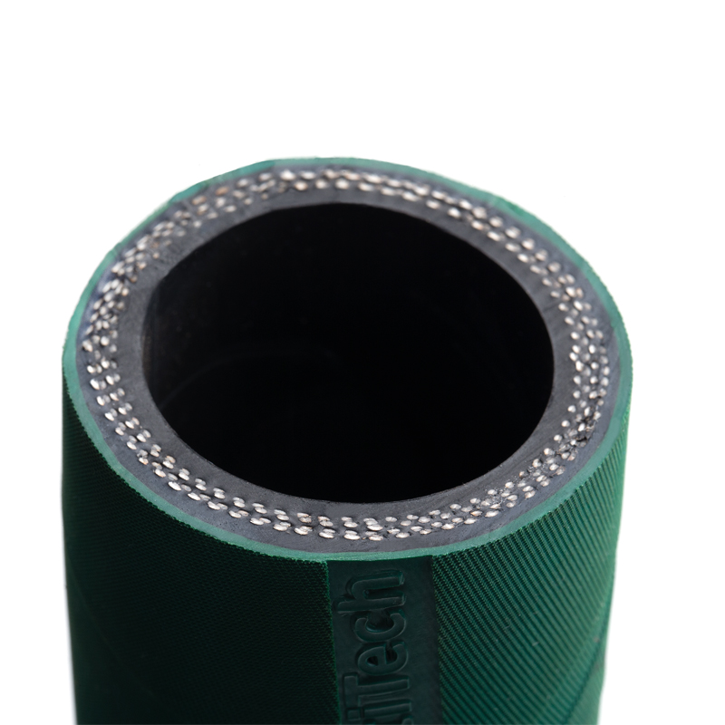 內膠:以NITRILE(丁腈)為基膠的合成橡膠,可輸送芳香含量達50%的石油,或以氟橡膠為基膠的合成橡膠FLOSYN,可輸送輸送芳香類含量達飽和的石油。外膠:黑色,紅色的以氯丁橡膠為基膠的的合成橡膠WINGPRENE,波紋狀外形。增強層:多層高承重的合成纖維層,帶兩條螺旋鋼絲加強,螺旋鋼絲可接地排靜電。溫度:-25℉~200℉
