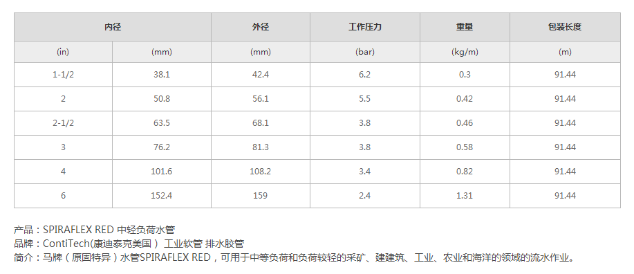 技術(shù)參數(shù)內(nèi)層:丁腈合成橡膠,RMA分類級別的B等級(中等耐油性)增強層:一層鋼絲編織外層:黃色ChemivicR合成橡膠,RMA分類級別抗油B等級(中等耐油性)(在耐火性測試方面,符合《MSHA列表》中第26節(jié),18.65的規(guī)定),表面光潔平于整工作溫度:0°F~200°F(-18°C~93°C)