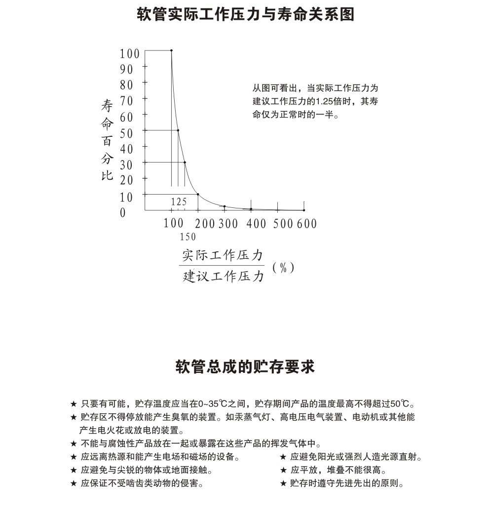 技術參數內層:丁腈及PVC混合物。內外層同時擠出可得到彎曲增強層:通過編織纖維增強外層:黑色EPDM合成橡膠(包覆貼面)工作溫度:-36°F到178°F(-37°C到81°C)